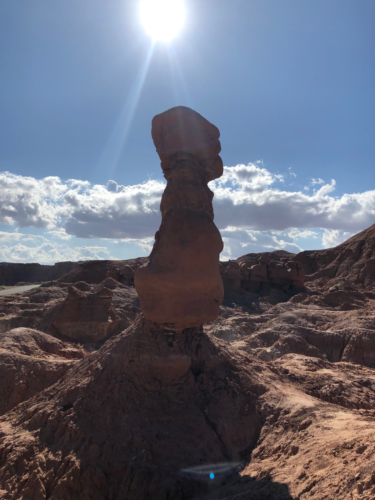 While exploring this valley, we got caught in a dust 'storm'. The car was a ways off and straight uphill so our only course was a try to shield ourselves behind a goblin. After the 'storm' we were covered in dust/dirt/grim...we were nasty. My mister's camera started having problems because of the dirt that had gotten in it even though he was doing his best to protect it during the 'storm' and all I kept saying was "I just want to brush my teeth". So much dirt! However, this happened in the morning and we weren't getting to our hotel until sometime that night so we made the best of our dirt covered situation and continued exploring the goblins. The parking lot is located level with the park road and then you take stairs straight down to the valley. There is no marked hiking trail, you just wander around.